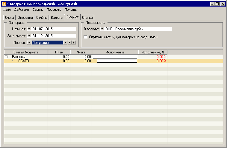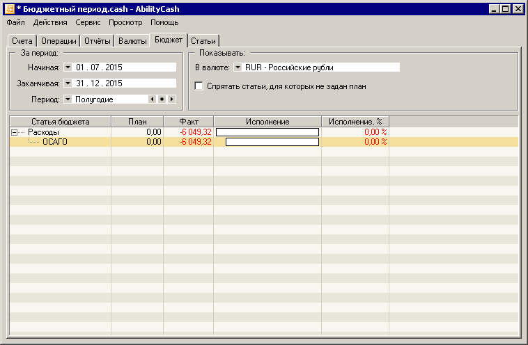 И, наконец, можно проверить, как именно будет показываться бюджет для второго полугодия после введения бюджетной даты:
