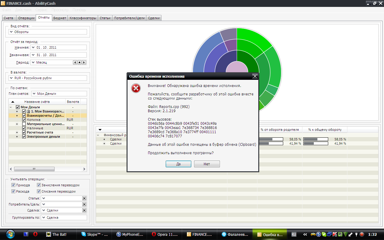 Текст ошибки к сожалению потерял, он есть в скриншоте. Базу также прилагаю. Версия 219.