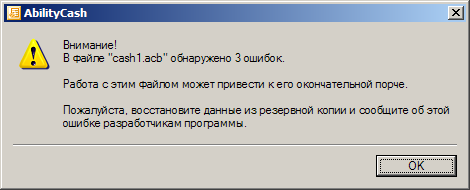 При удалении некоторых операций, при следующем открытии базы, выдается сообщение, что в файле обнаружены 3 ошибки (см. скриншот).