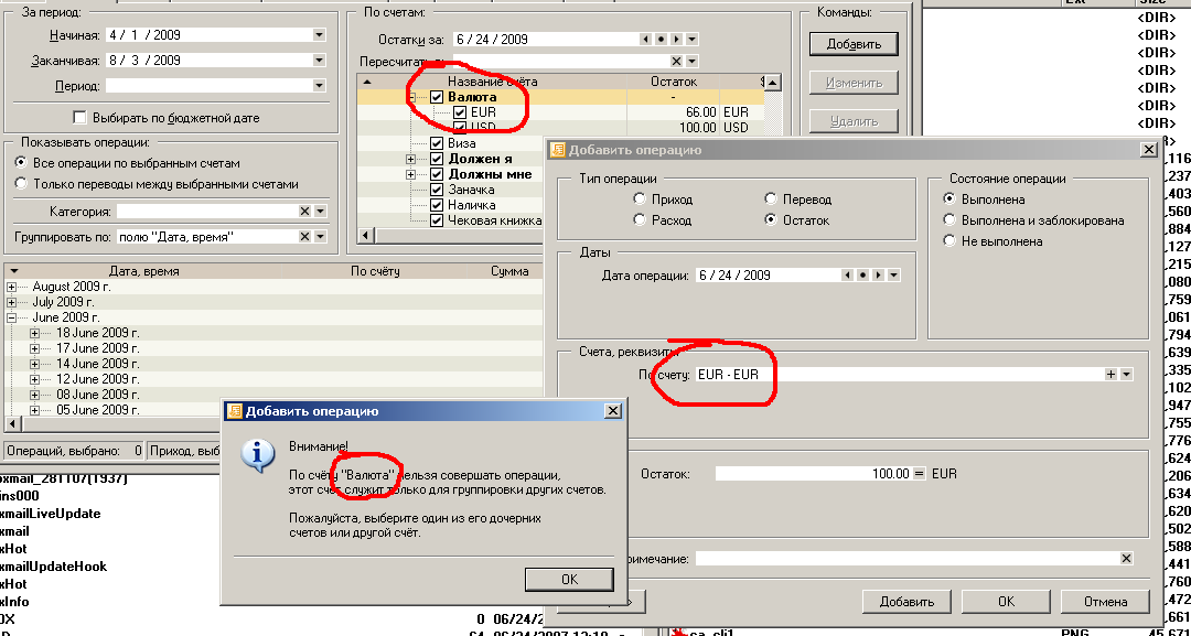 Случайное выделение группового счета блокирует добавление операции типа "остаток".