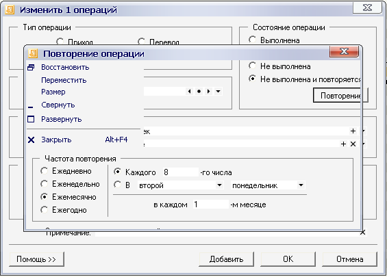 Замечен такой баг: при редактировании операции нажимаем кнопку "Повторение", при этом периодически окно показывается с глюками в прорисовке (см. скриншот).