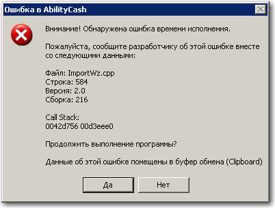 6. Появляется окно с ошибкой (см. скриншот)