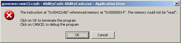 The instruction at "0x00422c8b" referenced memory at "0x00000014" The memory could not be "read"