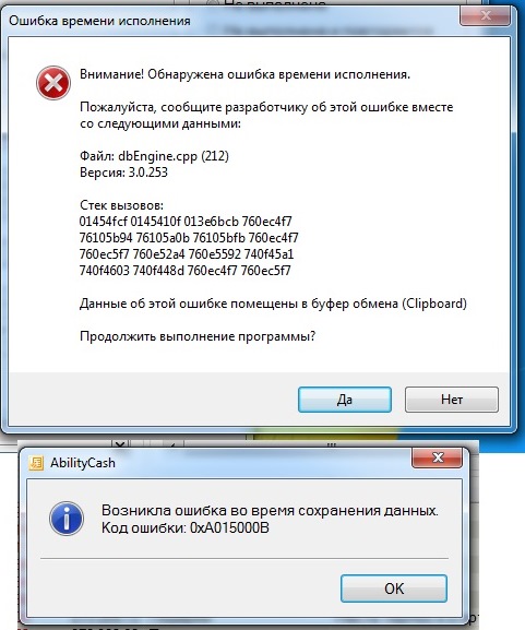 Хочу добавить, что этот код ошибки 0хА015000В появляется и без "ошибки времени исполнения", в результате программа начинает циклить и выйти из неё можно только, если НЕ СОХРАНЯТЬ внесённые изменения. Раньше это случалось, когда сохраняла внесённые изменения через падающее меню "Сохранить ctrl+S", а сегодня выдалась ошибка, когда выходила по "Х". Выкрутилась только через "Сохранить как..." и новое имя файла. Для интереса посмотрела старый файл, сохранилась только часть информации, причём как-то хитро- исчезло, что вводилось в середине работы.