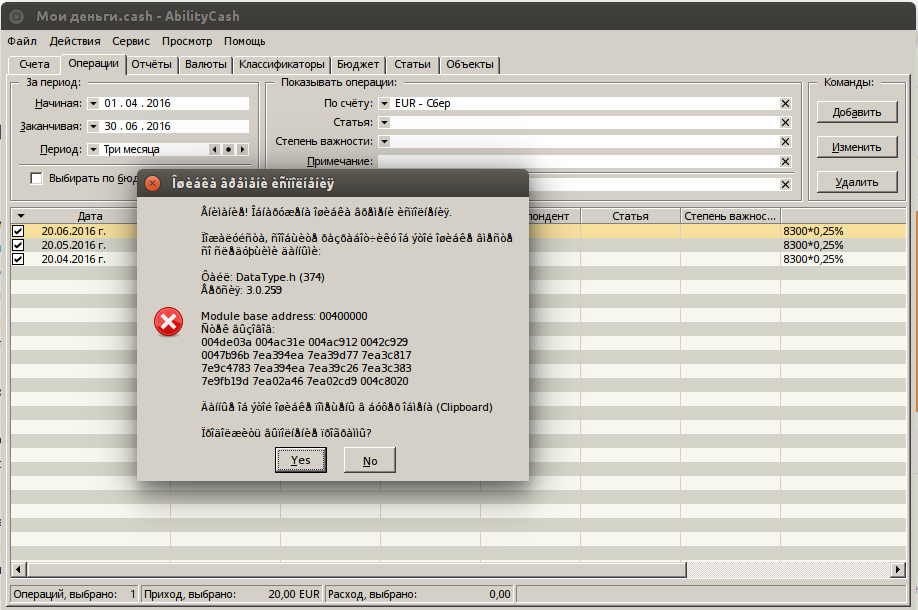 Я ничего не понял, нажал "Нет". Программа вылетела. Зашел заново — вроде все работает, но воспроизводить ситуацию побаиваюсь.
