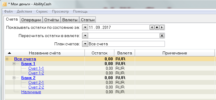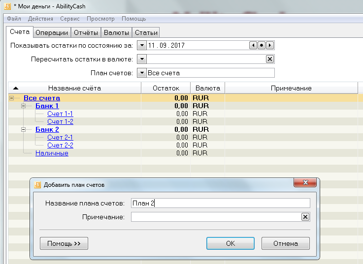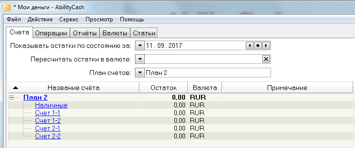 Хмм... Да, есть. Я полагал, что раз использована древовидная структура и сворачивание узла плана счетов, то и остальные планы вроде бы должны отображаться в этом же поле. Вместо этого список планов...