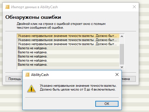 Экспортирую файл с операциями с 01/01/2018 по текущую дату. Потом делаю импорт. У меня добавлены в валюты 5 криптовалют, выскакивает 5 ошибок на точность после запятой, и 5 ошибок Валюта не найдена.