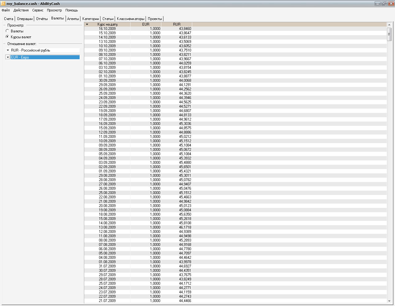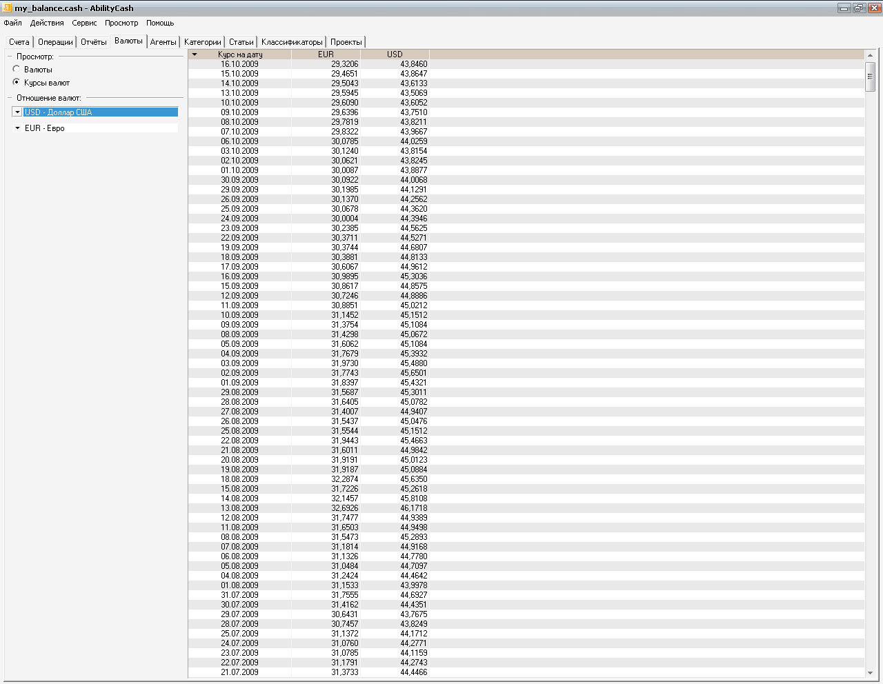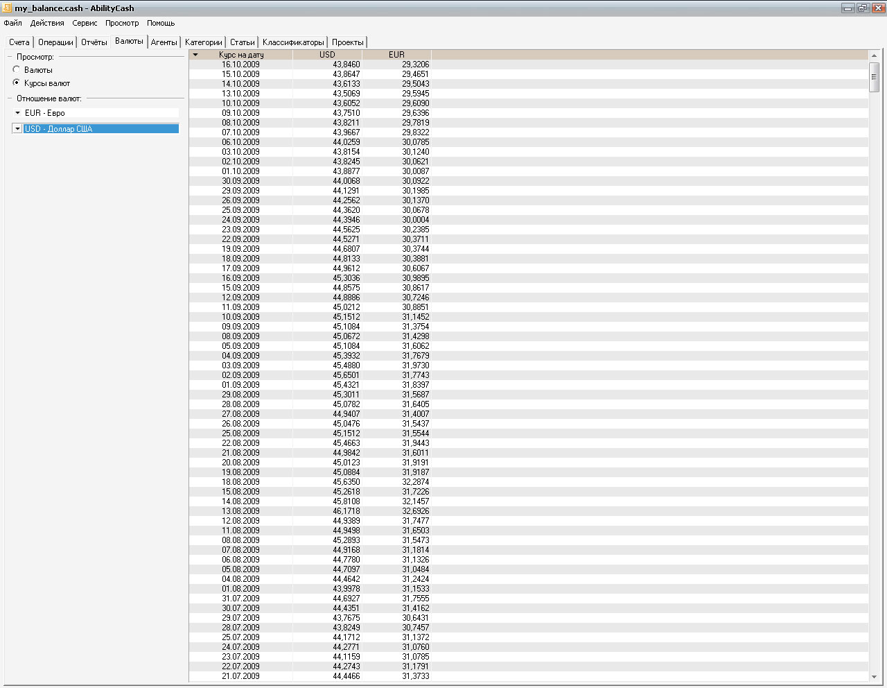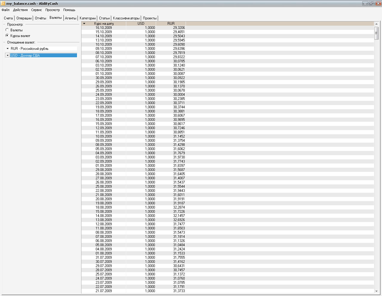 1. На вкладке "Валюты" выбрать "Курсы валют"