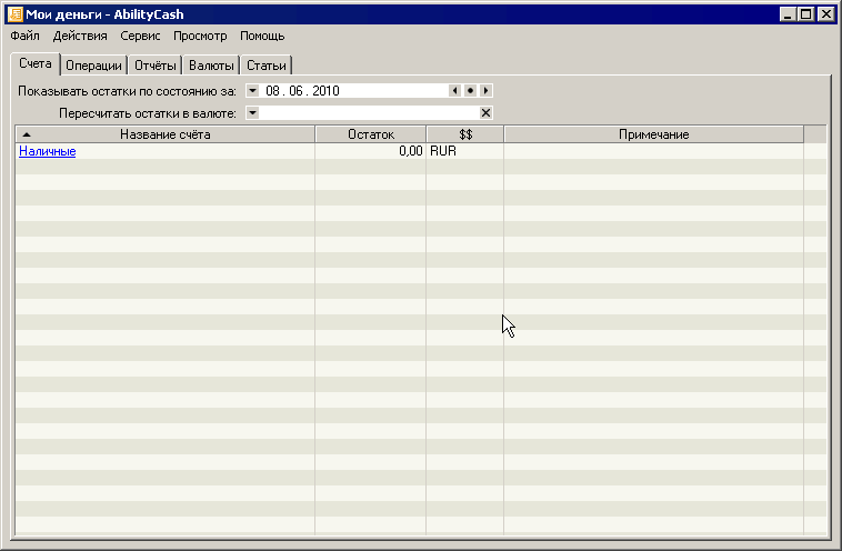 Следует повториться: если в папке с программой находится файл AbilityCash.ini, программа не будет пытаться обращаться к реестру для записи или чтения своих настроек. Настройки записываются в реестр только если в момент запуска программы, она не нашла файл настроек в своей папке.