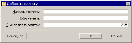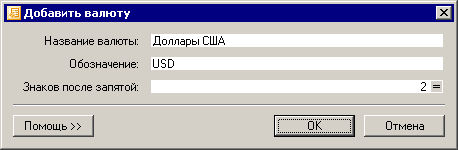 Итак, заполняем поля в окне добавления новой валюты: