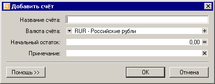 Появится окно для ввода нового счета: